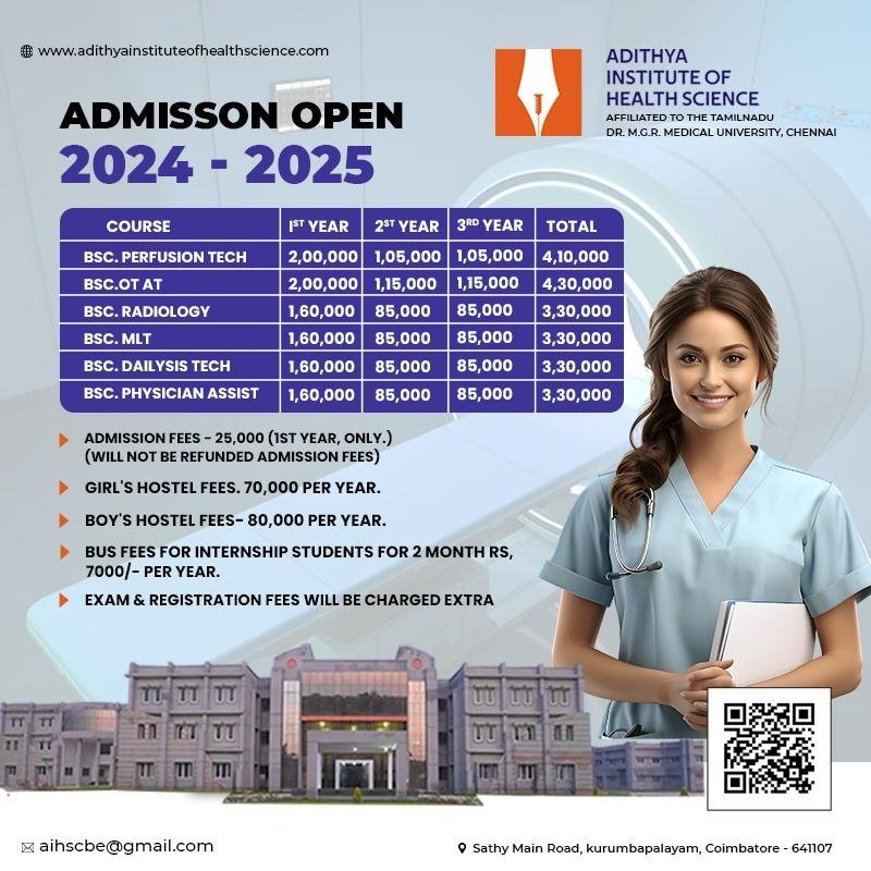 Education is all about transcending textbooks to provide practical exposure and skill development training. To have holistic teaching and learning, technology should allow for 24/7 access to information and shared digital content. Welcome to an institute that endeavors to make education an enlightening experience. Adithya Institute of Health Science (AIHS) was started in 2019 by the Adithya Education Trust to provide allied health science education to budding young students. The Chairman, Er. C. Sugumaran, being an industrialist, brings with him his extensive experience and the nitty-gritty of the industry, which adds a new dimension to academics. AIHS is not just a dream, but a mission to provide quality allied health science education to today’s youth who will build the nation tomorrow.